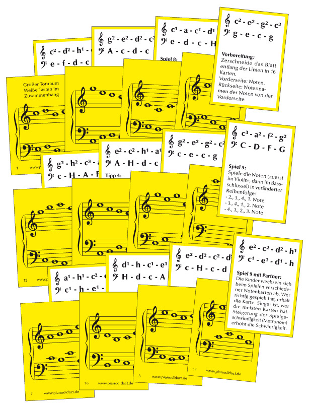 | Notenkarten Nr. 3 Großer Tonraum. Weiße Tasten im Zusammenhang |